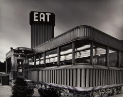 The American Diner series depicts a lost cultural way sign of the U.S.A.'s dependency on its road system and these diners' modernistic architecture. The diner was a true American icon that exemplified the burgeoning growth and prosperity of post-WWII. Its disappearance from the scene may be a harbinger of a different kind of country--one less brass and full of life, if more sophisticated. Its loss heralds an age of less surety.
